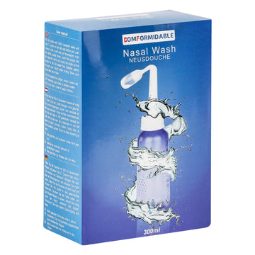 Eine Nasendusche ist eine Flasche, mit der Sie Ihre Nase mit einer milden Salzlösung spülen. Die Dusche reinigt Ihre Nasengänge auf natürliche Weise, indem sie Schleim, Staubpartikel und Allergene wegspült. Die Nasendusche Comformidable ist benutzerfreundlich gestaltet: Man hält die Flasche kopfüber, drückt den Knopf an der Unterseite und schon fließt das Wasser durch die Nase.